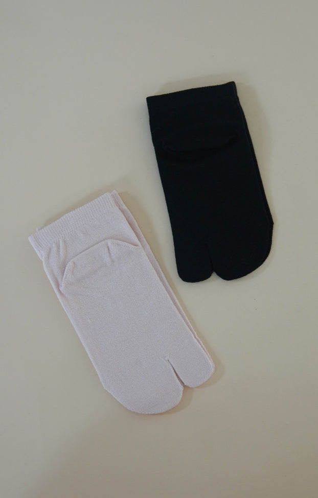 Made in Japan, these women's split toe tabi socks feature a smooth, premium silk blend fabric in a classic solid-color design. Crafted with soft Kenbo silk for a luxuriously comfortable feel against the skin. Silk's natural breathability and moisture wicking properties help keep feet dry and fresh during extended wear.
