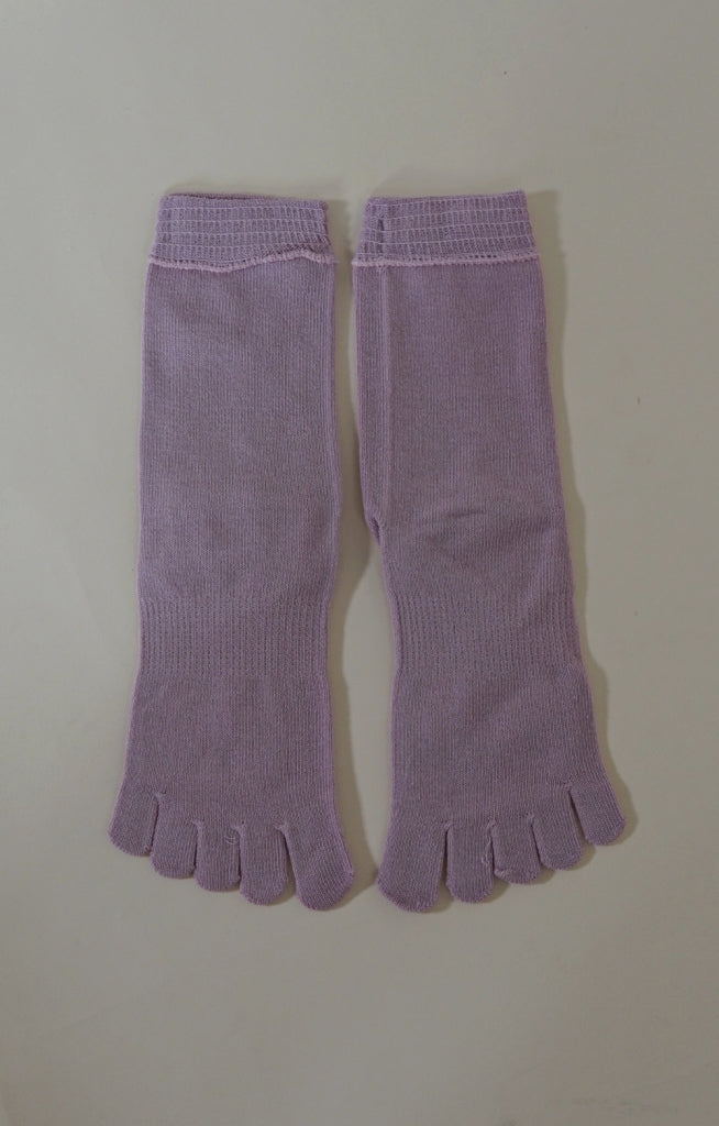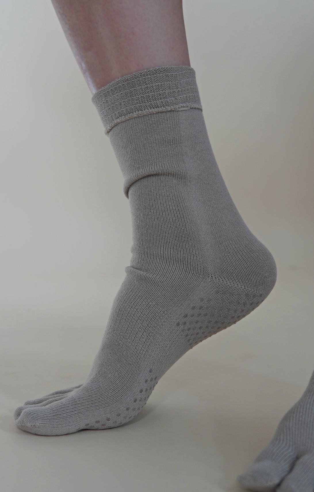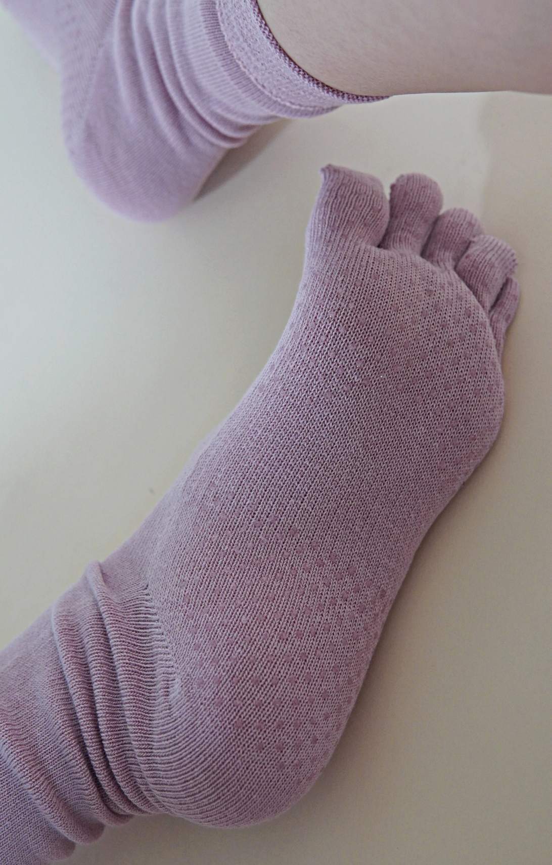 These five toe socks offer a relaxed, comfortable fit while keeping you steady on smooth surfaces with their non slip grip sole.