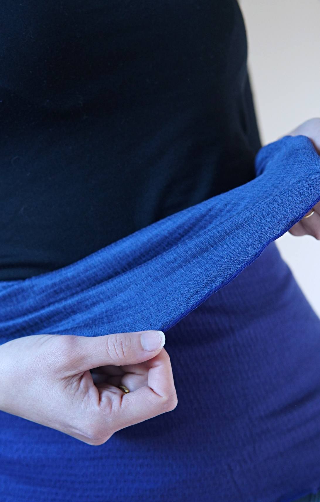 This belly warmer features silk on the silk inside and cotton on the outside.